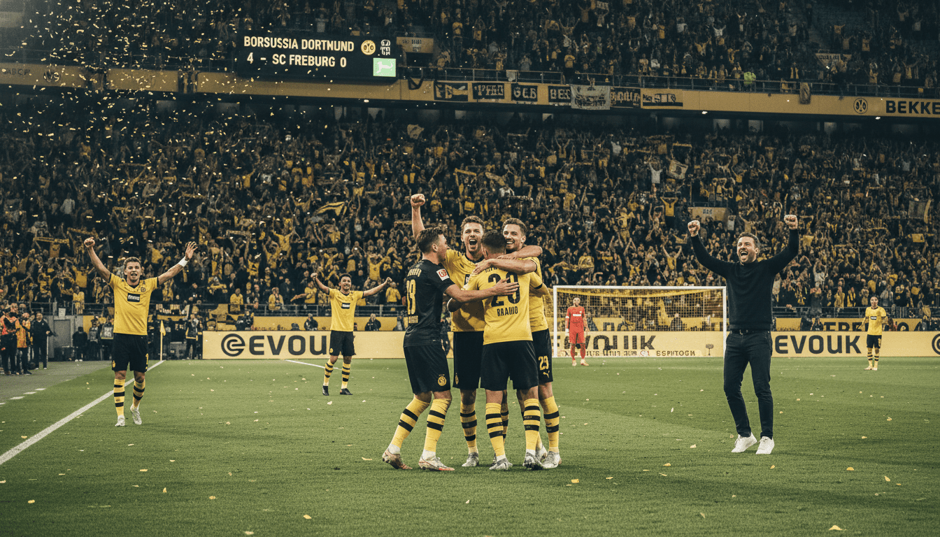 Dortmund struck early and often, turning individual defensive errors by Freiburg into a quick three-goal lead inside the first 40 minutes. Maximilian Beier opened the scoring in the eighth minute, Serhou Guirassy doubled the advantage six minutes later, and Ramy Bensebaini added a third before halftime. The visitors never recovered from the rapid damage, and substitute Fabio Silva capped the scoring late on to underline Dortmund’s control.
