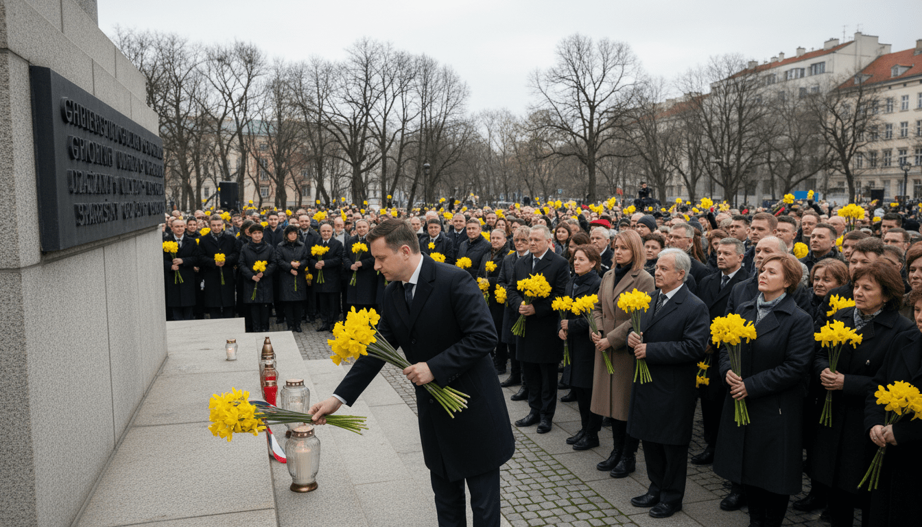 On Sunday, Warsaw daffodils appeared on coats and handbags across the city as volunteers handed out yellow paper flowers stamped with the date 19 April 1943. The simple blooms are a visible symbol of remembrance for the Jewish residents and fighters who rose against Nazi forces in the Warsaw Ghetto. Volunteers said the act of pinning a daffodil is intended to keep the memory of the uprising alive in public view.